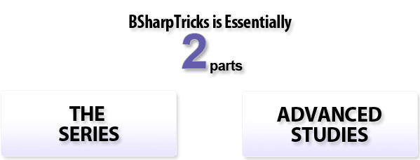 The second part of BSharpTricks is the Advanced Studies which enable the student to move forward into more advanced territory as his or her own pace.